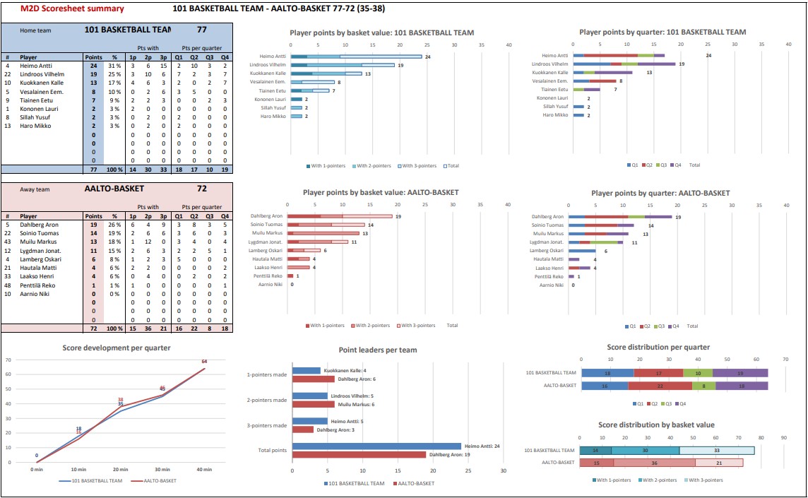 Ensimmäiset kolme jaksoa olivat todellista puolustusiloittelua, eikä suuria piste-eroja joukkueiden välillä nähty. Neljäs jakso alkoi vaatimattomissa lukemissa 45–46. Aalto-Basket aloitti kuitenkin viimeisen erän vahvasti ja johti parhaimmillaan 52–63, kun ottelun neljättä erää oli noin puolet jäljellä. Sitten kuitenkin jotain tapahtui. Aalto ei pystynyt tekemään enää yhtäkään pelitilannekoria, ja 101 Basketball Team -joukkue kiri eron umpeen tasaisen tappavasti. Varsinainen peliaika päättyi lukemissa 64–64, ja kymmenpäinen yleisö pääsi vielä todistamaan viiden minuutin jatkoaikaa.