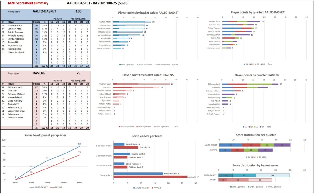 Onnistumiset ruokkivat toisiaan ja erän loputtua Aalto oli osunut peräti kahdeksan kertaa kaaren takaa. Erä päättyi lopulta 32-16 Aallon hyväksi eli Aalto oli tehnyt tasan kaksi kertaa yhtä monta pistettä kuin porvoolaiset.